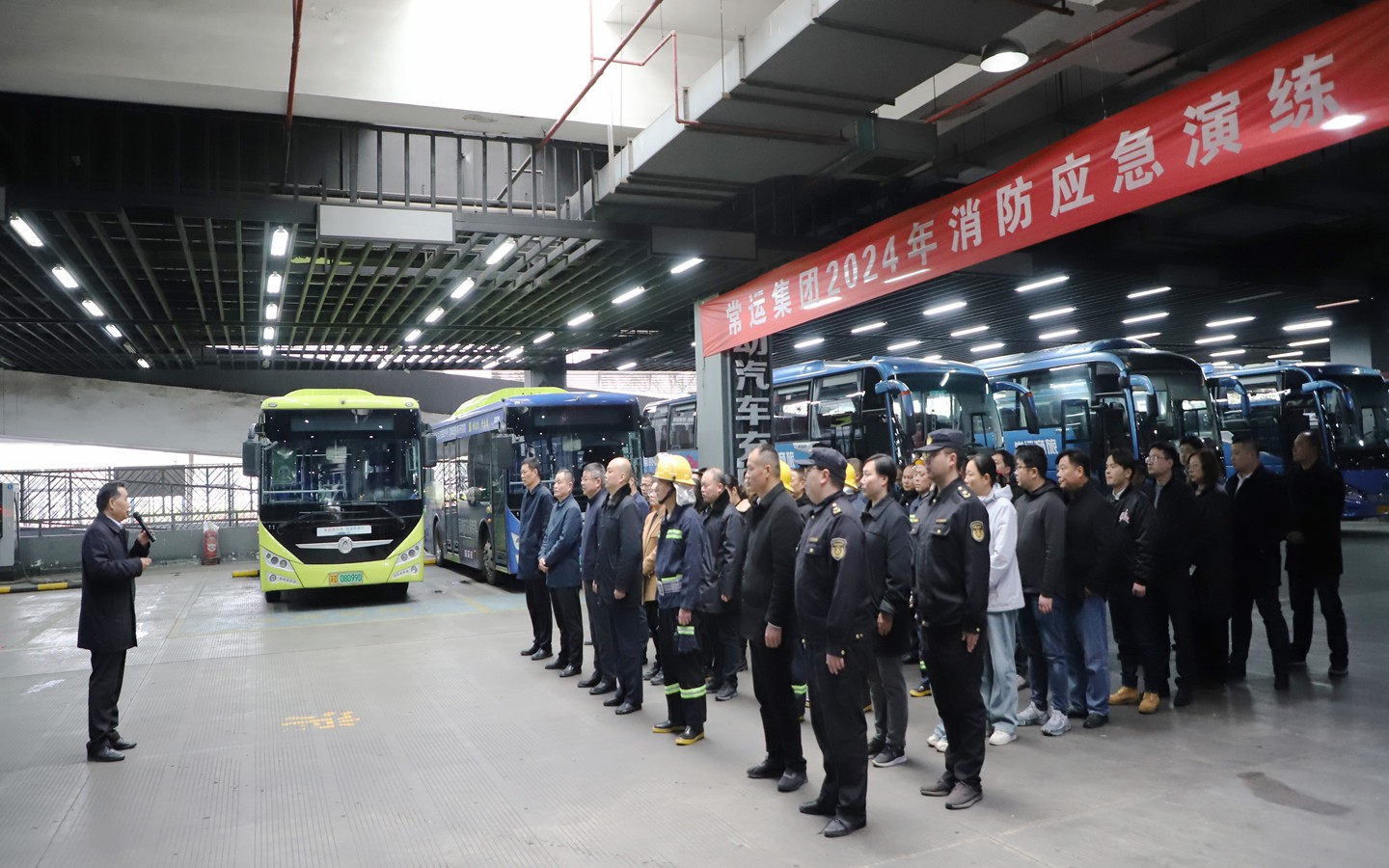 為切實(shí)加強(qiáng)員工消防安全意識(shí),提升應(yīng)急處置能力,3月27日下午,常運(yùn)集團(tuán)在常州汽車(chē)站一樓停車(chē)場(chǎng)舉行了2024年消防應(yīng)急演練,集團(tuán)公司各相關(guān)部門(mén)及單位共計(jì)70余人參加本次演練活動(dòng)。集團(tuán)公司董事長(zhǎng)謝星、副總經(jīng)理費(fèi)軒龍等參加活動(dòng)并進(jìn)行現(xiàn)場(chǎng)指導(dǎo)。