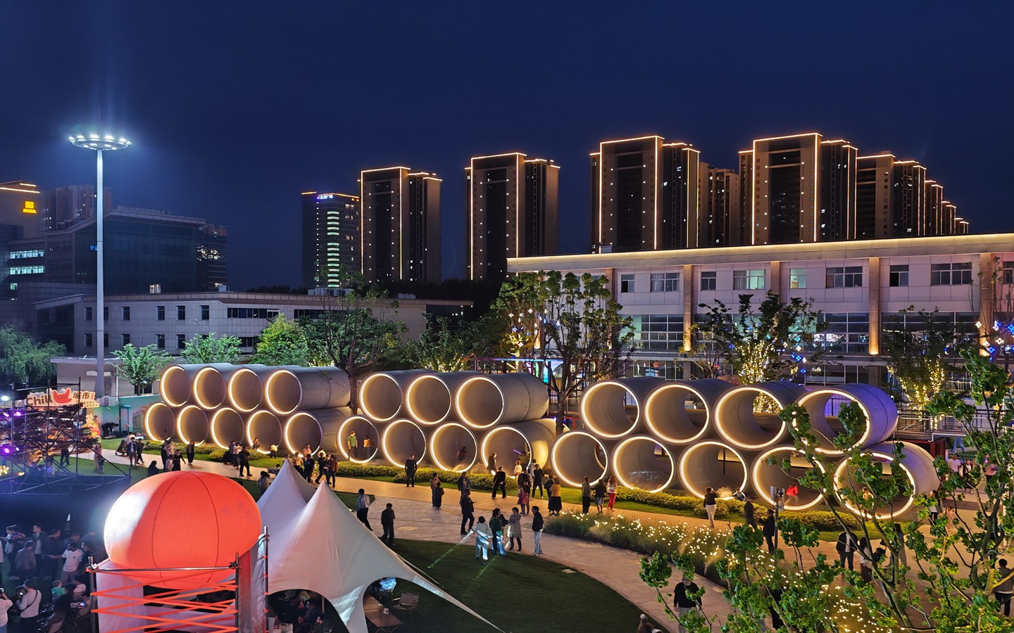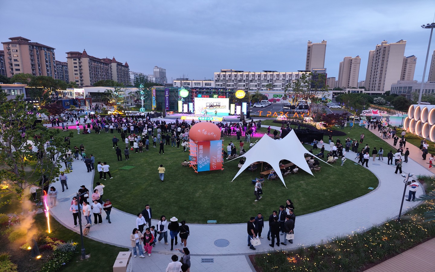 開(kāi)放街區(qū),24小時(shí)嗨玩勝地。主打開(kāi)放式城市公園風(fēng)格,街區(qū)設(shè)計(jì)了6個(gè)人行出入口、小橋流水式步道、開(kāi)闊的自然空間以及各式樓頂觀(guān)景休閑露臺(tái),開(kāi)放、共享的元素打造將成為時(shí)尚一族City walk的新去處,漫步園內(nèi),似有“身處鬧市中,行走在自然里”的超然之感。城市微度假的特色,將城市公園與多巴胺集裝箱結(jié)合,60多個(gè)顏色造型業(yè)態(tài)各不相同的集裝箱、巴士、蘑菇屋、蛋屋,2000㎡林下空間,夏威夷等多式情調(diào)風(fēng)格,既是精致的煙火美食休閑之所,也是拍客打卡出片勝地。街區(qū)一步一景,將汽車(chē)、“海豚少年”Timmo、“我愛(ài)常州”等元素融入街區(qū)。街區(qū)全區(qū)燈光亮化,白天這里是城市繁忙的一隅,讓你感受城市公園的放松。夜晚,華燈初上,這里是24小時(shí)不打烊的嗨場(chǎng),龍城夜未央的精彩在這里盡數(shù)體現(xiàn)。街區(qū)將不定期舉辦草坪音樂(lè)節(jié)、演說(shuō)會(huì)等活動(dòng),積極為常州“青春樂(lè)都”添磚加瓦,也會(huì)舉辦藝術(shù)類(lèi)市集、戶(hù)外主題沙龍、團(tuán)建拓展等文化活動(dòng)。